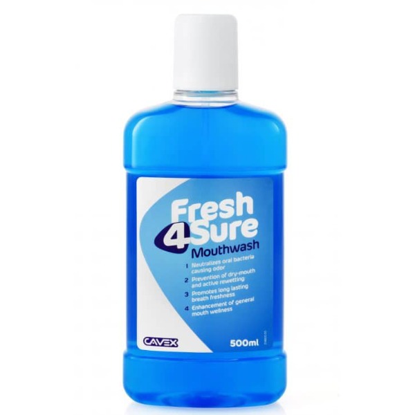Prevent bad breath with Cavex Fresh4Sure. Cavex Fresh4Sure is a unique 3-step oral care system that restores the balance between ‘good’ and ‘bad’ bacteria in the mouth in a natural way. Stabilizing oral bacteria is essential for a healthy mouth and fresh breath. The 3-step oral care system is therefore effective against halitosis and a dry mouth.