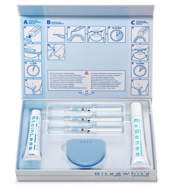 We value the opinion of the dentist. That is why we let The Dental Advisor test our Cavex Bite & White ABC Masterkit. After a clinical evaluation by a team of dentists, this complete whitening solution received a clinical rating of no less than 87%, which corresponds to 4 (out of max. 5) pluses. Professionals rate the ABC Masterkit as an effective solution that is easy to use.